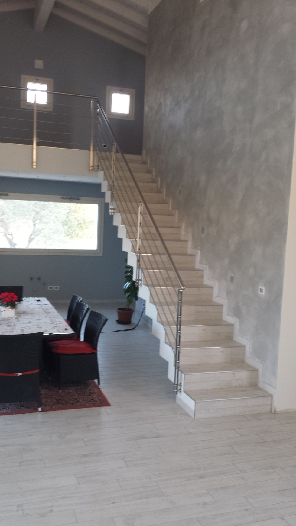 La doppia altezza consente una maggiore continuità spaziale e favorisce l’ingresso della luce naturale, rafforzando il rapporto tra interno ed esterno.